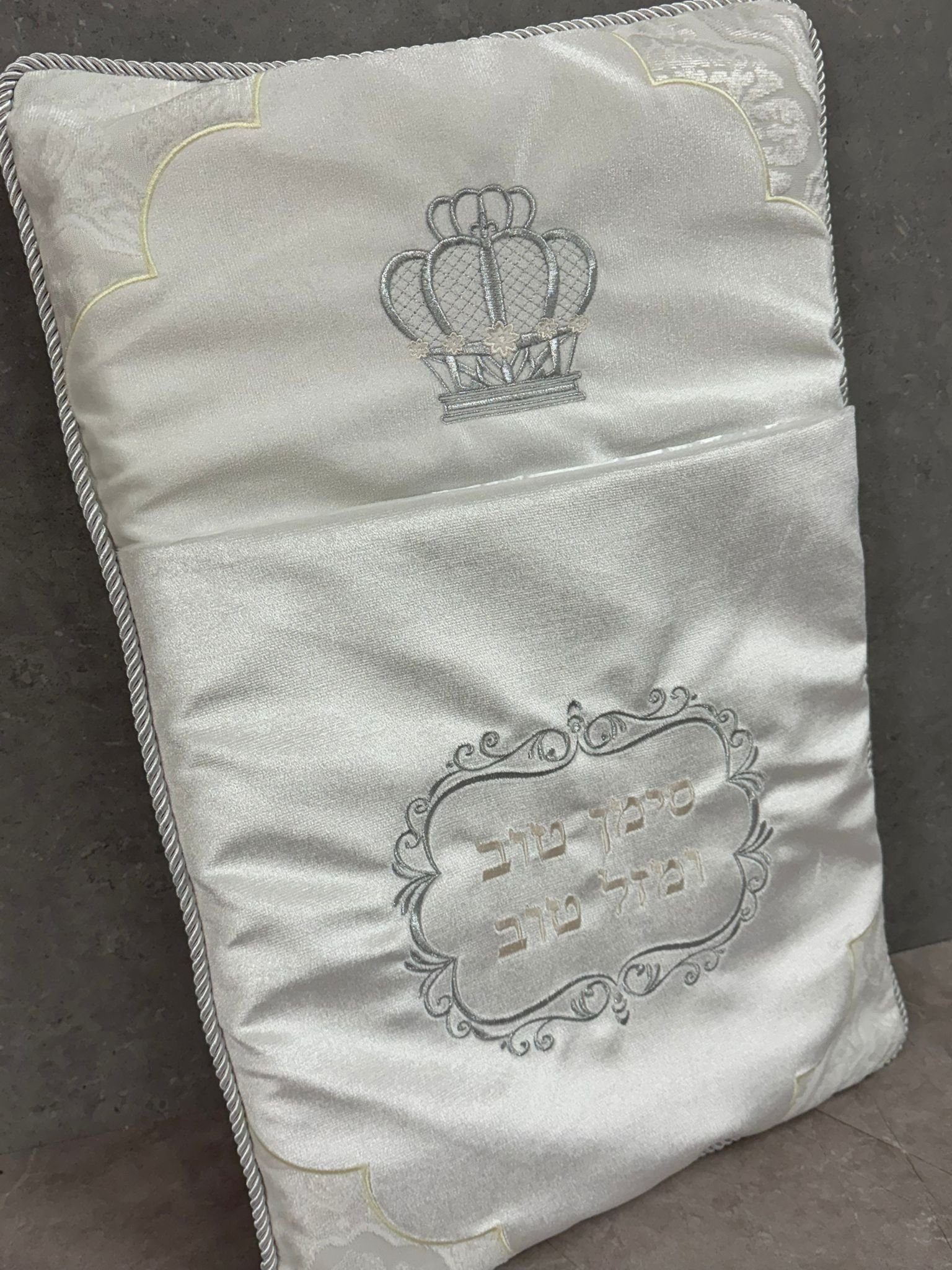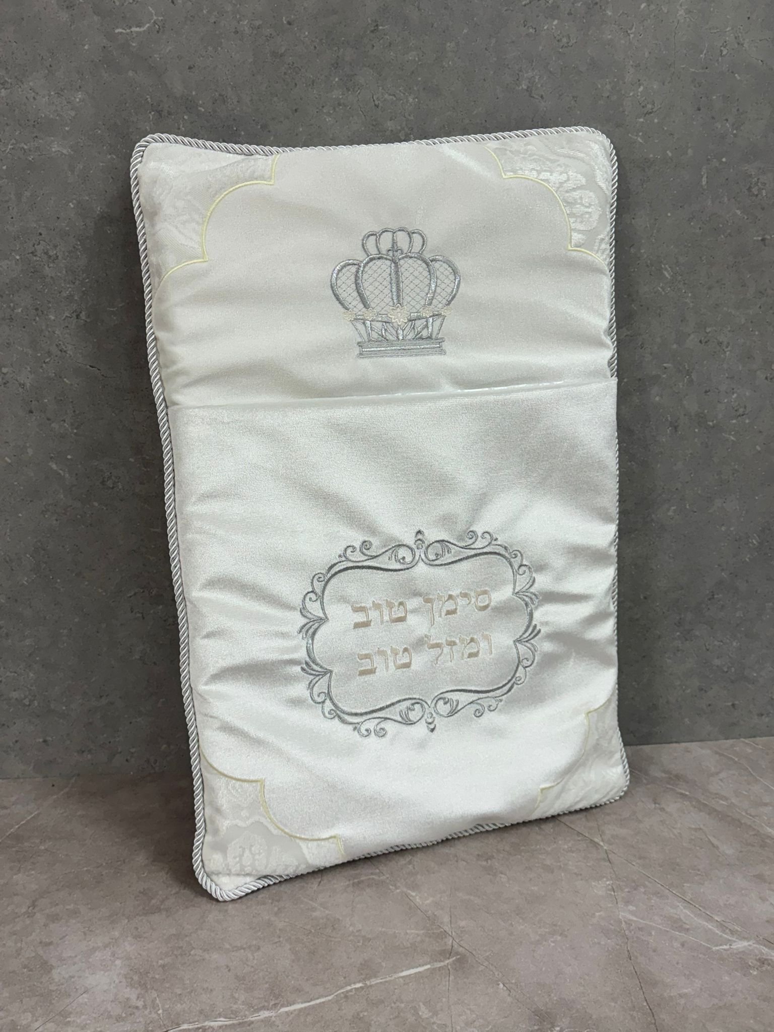 כרית מהודרת לברית עם רקמה משולבת ותחרה מידה – 74*50 ס"מ ניתן להוסיף רקמה אישית (לא חובה)