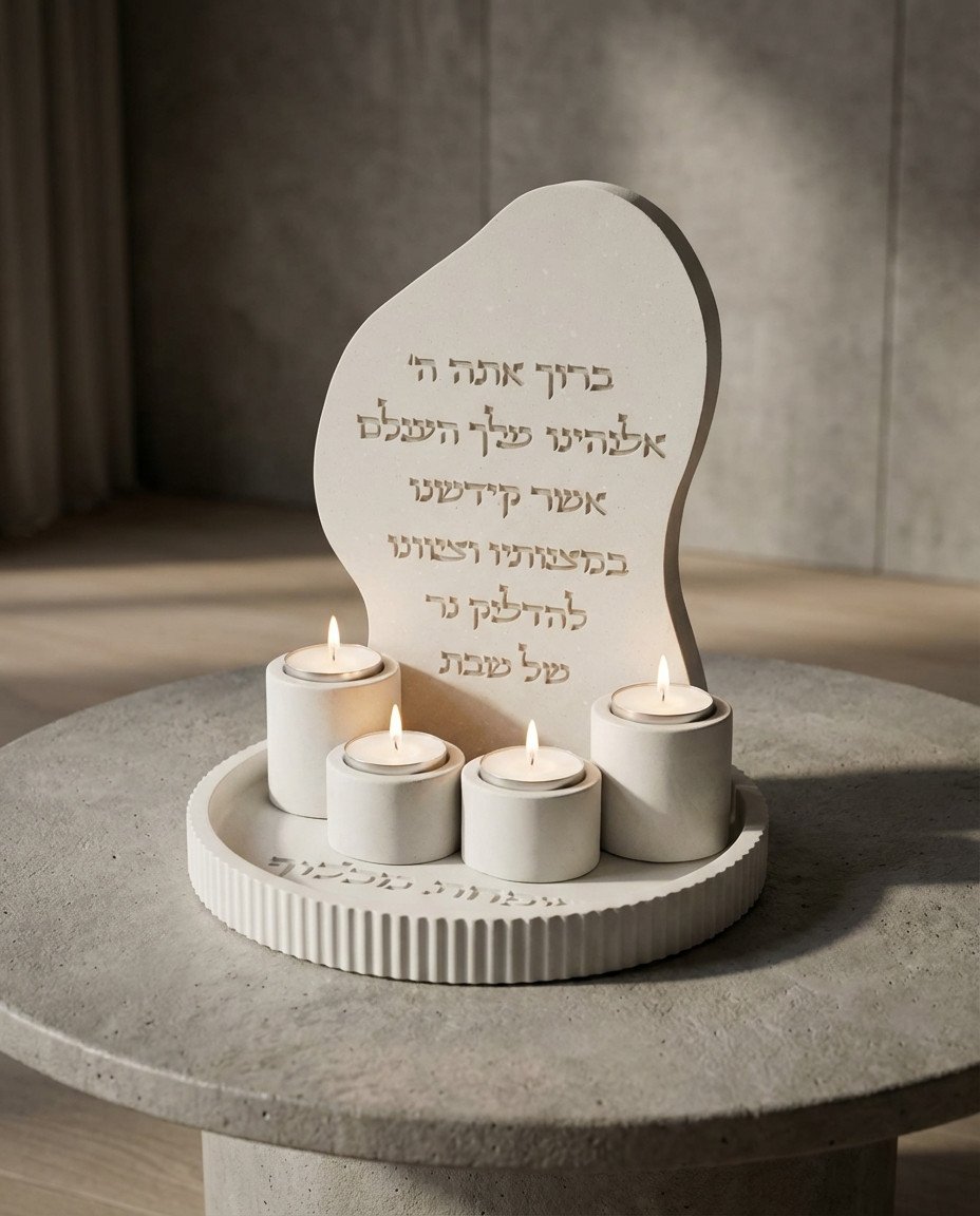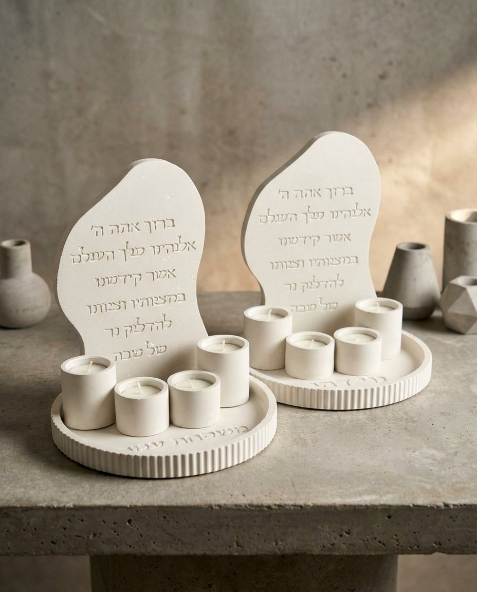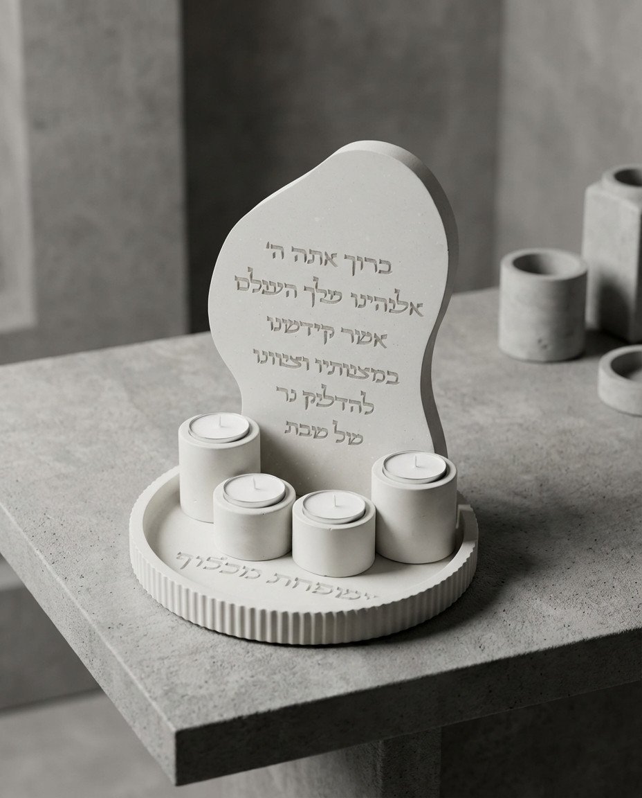 מעמד ייחודי להדלקת נרות שבת מבטון עם חריטת שם / שם משפחה