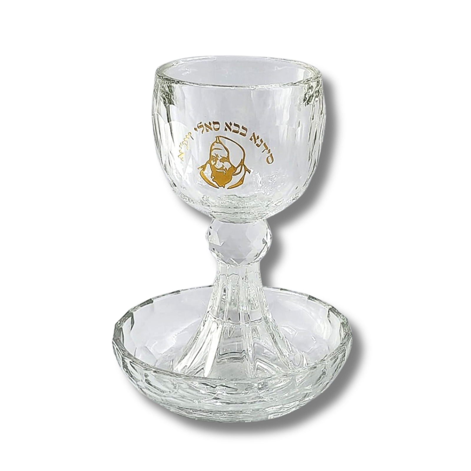 גביע קריסטל שקוף מהודר עם חריטת הבבא סאלי בזהב