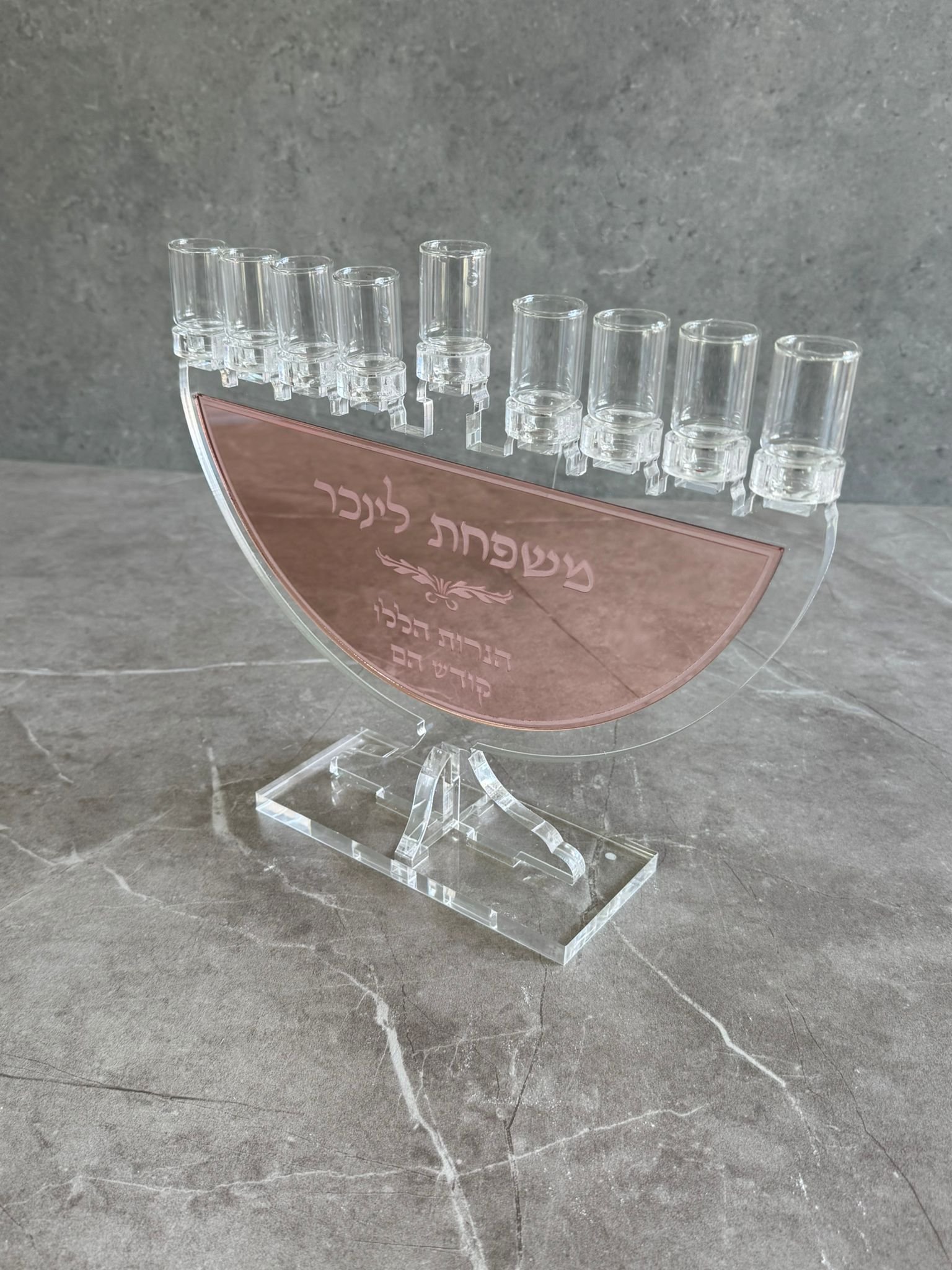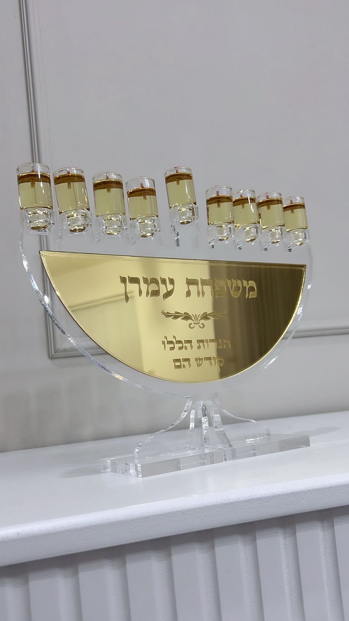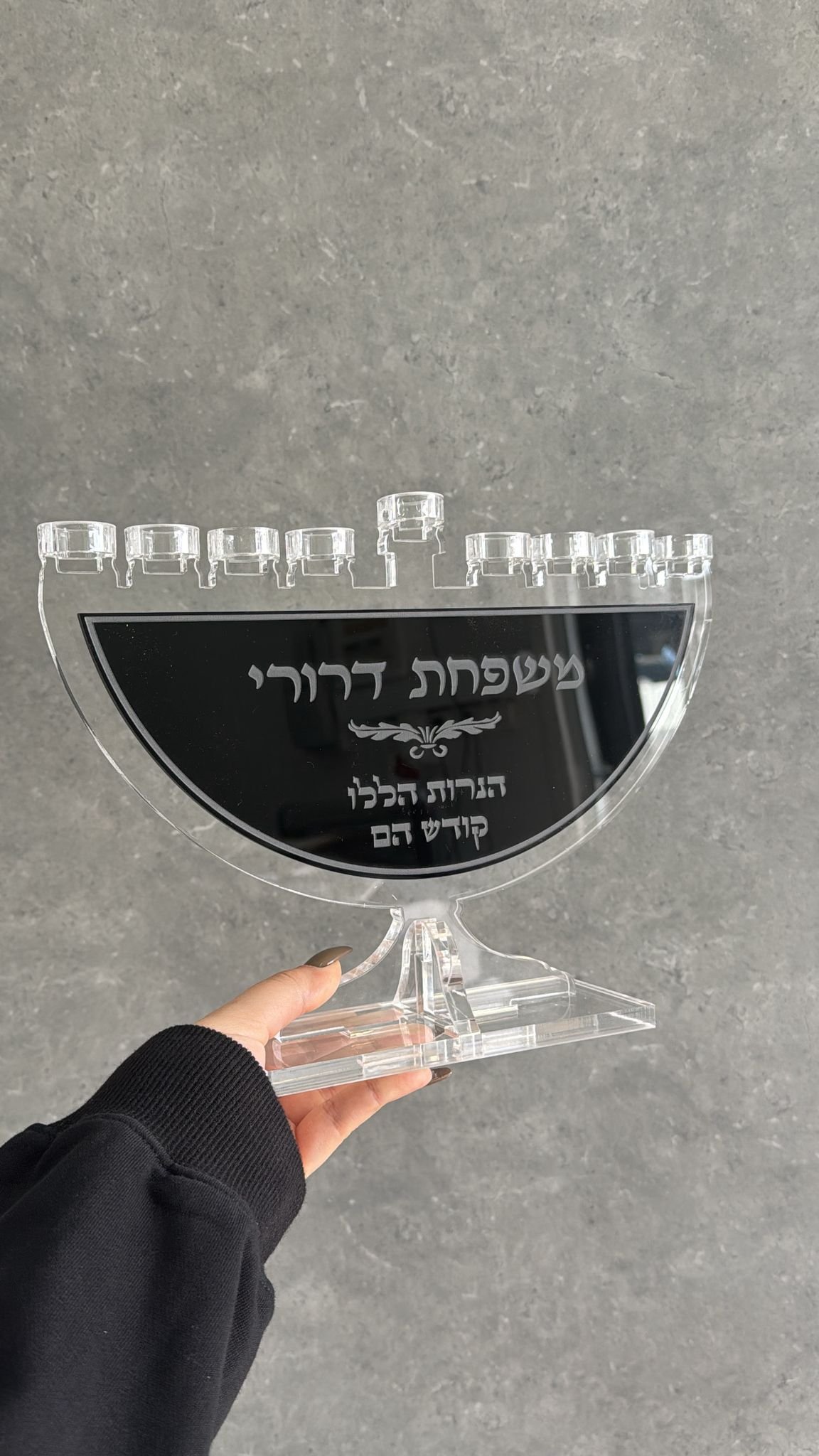 – גוף החנוכיה עשוי אקריליק וקיים בצבעים לבחירה – שקוף / שחור