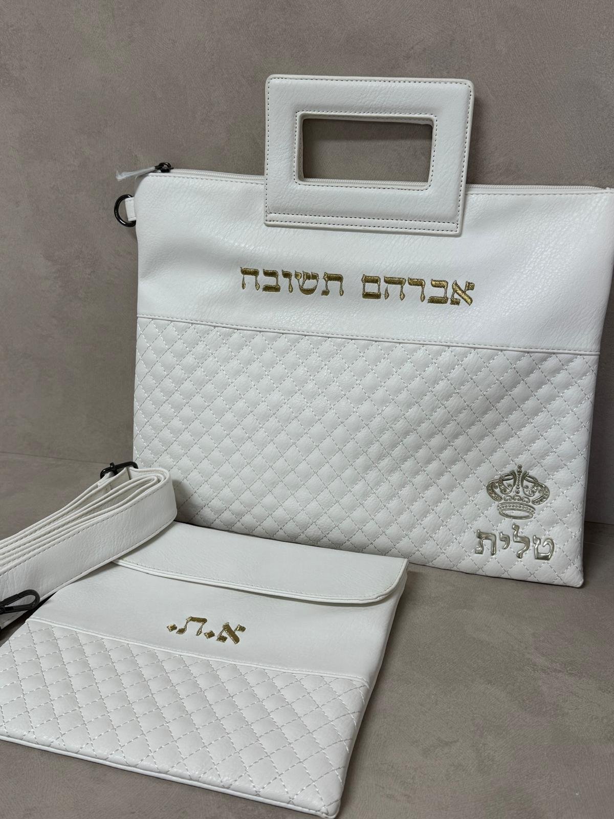 סט כיסויים לטלית ותפילין מהודר פרימיום עם רצועות נשיאה לטלית ולתפילין עם רקמת שם לבחירה יש לציין את השם לרקמה בתיבה המיועדת לכך