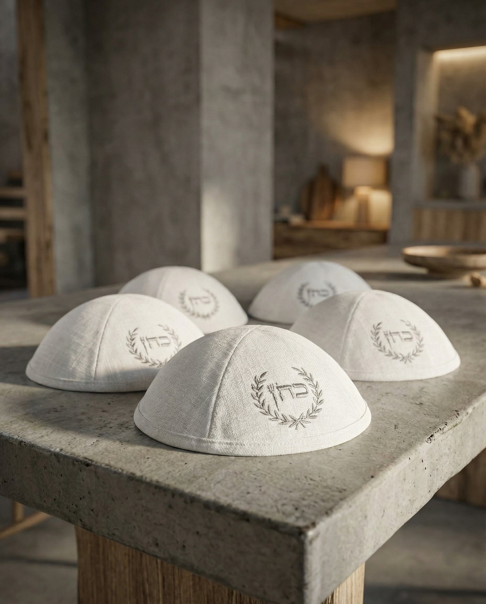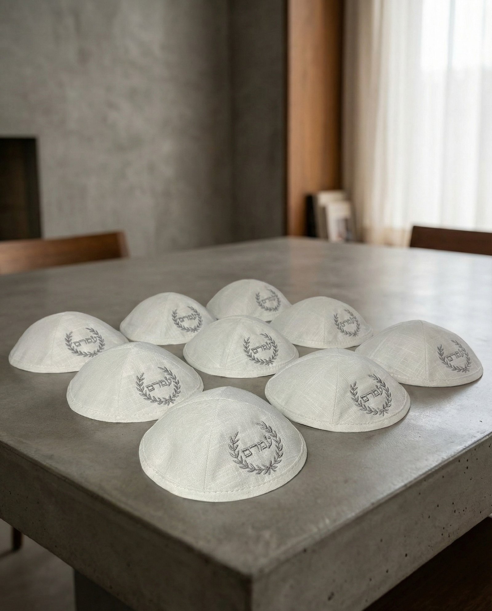 כיפת פשתן עם עיטור עלים ורקמת שם/משפחה