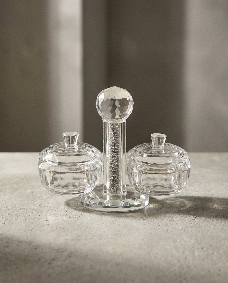 מלחייה קריסטל עם שבבי זכוכית מכסה לכל צד